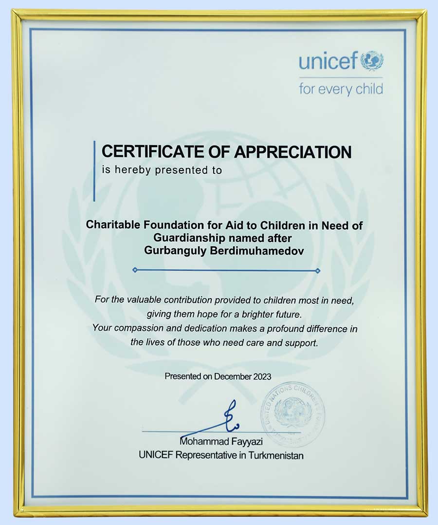 maslahatynda BMG-niň Çagalar gaznasynyň (ÝUNISEF) Türkmenistandaky wekilhanasy